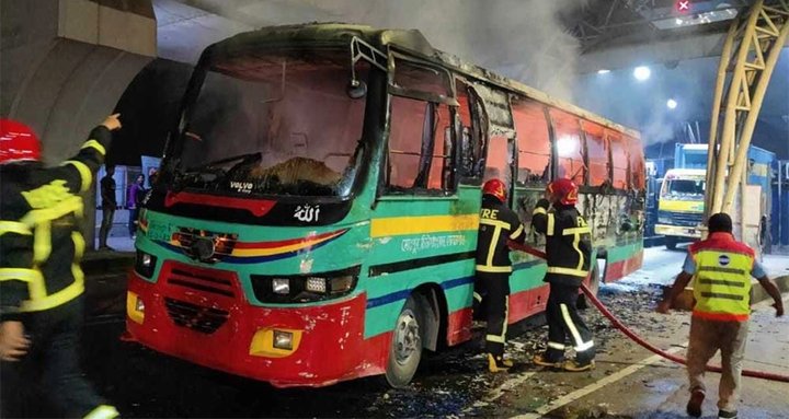 ফায়ার সার্ভিস জানায়, রাত সোয়া ৯টার দিকে গুলিস্তান টোল প্লাজার পাশে রজনীগন্ধা পরিবহনের একটি বাসে আগুন লাগার সংবাদ পাওয়া যায়। পরে সিদ্দিকবাজার ফায়ার স্টেশনের দুটি ইউনিট ঘটনাস্থলে গিয়ে রাত ৯টা ২৭ মিনিটে আগুন নেভায়।