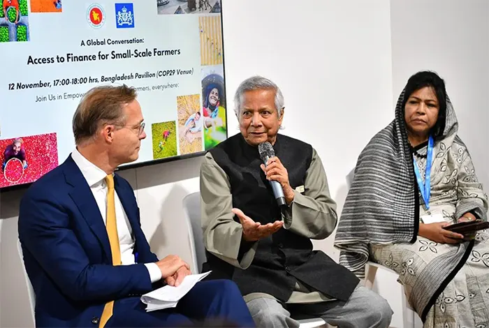 জলবায়ু সম্মেলনস্থলে বাংলাদেশে প্যাভিলিয়নে বাংলাদেশ ও নেদারল্যান্ডস যৌথভাবে “একটি বৈশ্বিক সংলাপ: ক্ষুদ্র কৃষকদের জন্য অর্থায়ন সুবিধা” শীর্ষক এই ইভেন্টের আয়োজন করে। অনুষ্ঠানটি সঞ্চালনা করেন অতিরিক্ত পররাষ্ট্র সচিব রিয়াজ হামিদুল্লাহ এবং এতে উপস্থিত ছিলেন নেদারল্যান্ডসের জলবায়ু দূত বোরবোন-পারমার ডাচ প্রিন্স জেইম বার্নার্ডো।