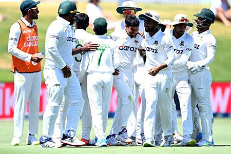 স্পোর্টস ডেস্ক::নিউজিল্যান্ডের বিপক্ষে ঐতিহাসিক জয়ে রেকর্ড বুক ওলট-পালট করে দিয়েছে বাংলাদেশ। বেশ কয়েকটি অর্জনে নাম তুলেছেন মুমিনুলরা। সংখ্যায় সংখ্যায় দেখে নেয়া যাক সেসব। ১/ নিউজিল্যান্ডের বিপক্ষে এটি প্রথম জয় বাংলাদেশের। এর আগে কিউইদের বিপক্ষে ১৫ টেস্টের ১২টিতেই হেরেছে টাইগাররা। ড্র করেছে তিনটি। এটি চলমান টেস্ট চ্যাম্পিয়নশিপেও বাংলাদেশর প্রথম জয়। গত আসরে ৯ ম্যাচের সবগুলোতেই হেরেছিল তারা। ১/ মাউন্ট মঙ্গানুইয়ের জয় নিউজিল্যান্ডের মাটিতে যেকোনো ফরম্যাট বিবেচনায় টাইগারদের প্রথম জয়। এর আগে কিউইদের মাটিতে ৩২ ম্যাচ খেলে সবগুলোতে হারে বাংলাদেশ। ১৭/ বাংলাদেশের বিপক্ষে নামার আগে ঘরের মাঠে টানা ১৭ টেস্টে অপরাজিত ছিল নিউজিল্যান্ড। সবশেষ হার ছিল ২০১৭তে দক্ষিণ আফ্রিকার বিপক্ষে। বাংলাদেশের কাছে হারের মধ্য দিয়ে ঘরের মাঠে টানা সিরিজ জয়ের রেকর্ডে ছেদ পড়লো (টানা ৮ সিরিজ) তাদের। ৫/ বিদেশের মাটিতে এটি বাংলাদেশের পঞ্চম টেস্ট জয়। এর আগে জিম্বাবুয়ে ও ওয়েস্ট ইন্ডিজে দুটি, এবং শ্রীলঙ্কার মাঠে একটি জয় পায় টাইগাররা। ৬-৪৬/ ইবাদত হোসেনের বোলিং ফিগার। টেস্টে এটি বাংলাদেশি পেসারদের মধ্যে দ্বিতীয় সেরা ফিগার। ইবাদতের চেয়ে ভালো বোলিং ফিগার আছে কেবল শাহাদাৎ হোসেন রাজিবের। ২০০৮ সালে দক্ষিণ আফ্রিকার বিপক্ষে ২৭ রানে ৬ উইকেট নেন শাহাদাৎ। ৩৩/ দ্বিতীয় ইনিংসে ৩৩ রানের মধ্যে ৮ উইকেট হারায় নিউজিল্যান্ড। বাংলাদেশের বিপক্ষে টেস্টে যা কোনো দলের পক্ষে সর্বনিম্ন। ১৩/ এই টেস্টে ১৩ উইকেট নিয়েছেন বাংলাদেশি পেসাররা। যা কোনো টেস্টে বাংলাদেশি পেসারদের সর্বোচ্চ শিকার। এর আগে ২০১৩তে হারারেতে ১১ উইকেট নেয় পেসাররা। ১৬৯/ টেস্টে বাংলাদেশের বিপক্ষে কিউইদের সর্বনিম্ন সংগ্রহ। এর আগে ২০০৮ সালে চট্টগ্রামে ১৭১ রানে গুটিয়ে যায় নিউজিল্যান্ড। এছাড়া এশিয়ার বাইরে বাংলাদেশের বিপক্ষে এটি কোনো দলের দ্বিতীয় সর্বনিম্ন স্কোর। ২০১৮তে ওয়েস্ট ইন্ডিজ অলআউট হয় ১২৯ রানে।
