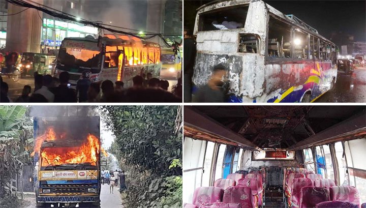 পুলিশ জানায়, সকালে ইতিহাস পরিবহনের একটি বাস চন্দ্রা থেকে ছেড়ে ঢাকার উদ্দেশ্যে রওনা দেয়। বাসটি সকাল সাড়ে ১০টার দিকে নবীনগর চন্দ্রা মহাসড়কের বাড়ইপাড়া এলাকায় পৌঁছলে দুর্বৃত্তরা যাত্রী বেসে বাসে উঠে আগুন দিয়ে পালিয়ে যায়। এ সময় স্থানীয়রা বাসের আগুন দ্রুত নিভিয়ে ফেলেন। ফলে বাসটির তেমন ক্ষয়ক্ষতি না হলেও পাঁচটি সিট পুড়ে যায়।