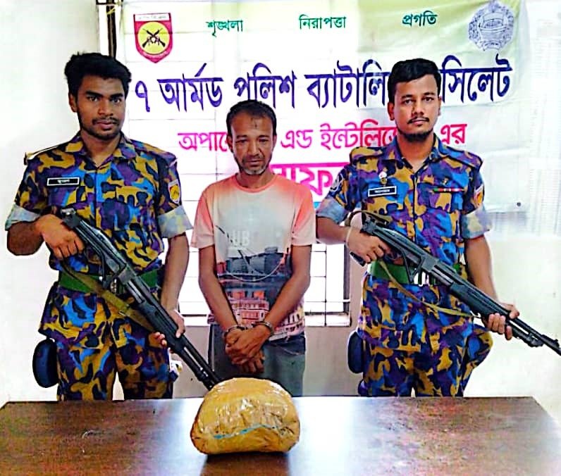 নিজস্ব প্রতিবেদকঃঃসিলেট মহানগরের দক্ষিণ সুরমা এলাকা থেকে ১ কেজি গাঁজাসহ এক মাদক ব্যবসায়ীকে আটক করেছে আর্মড পুলিশ ব্যাটালিয়ান, এপিবিএন-৭।