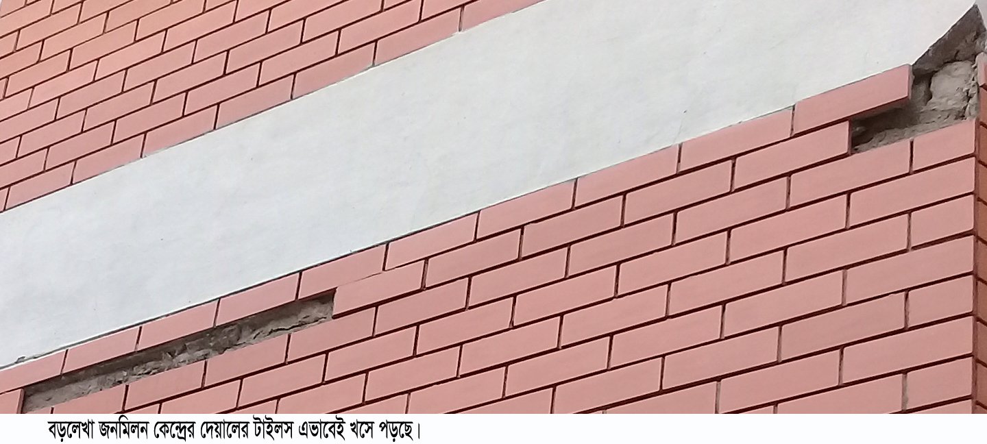 স্টাফ রিপোর্টার॥ বড়লেখায় ৭ কোটি টাকা ব্যয়ে জেলা পরিষদের অর্থায়নে নির্মিত ৫০০ আসন বিশিষ্ট জনমিলন কেন্দ্রের আনুষ্ঠানিক উদ্বোধনের বছর না ঘুরতেই ছাদ ফেটে পানি চুঁয়ে নষ্ট হচ্ছে সিলিংয়ের পার্টেক্স। ভবনের বিভিন্ন স্থানে দেখা দিয়েছে ছোটবড় ফাটল। খসে পড়ছে দেয়ালের টাইলস। অভিযোগ উঠেছে নির্মাণ কাজের অনিয়মের কারণেই এমনটি হচ্ছে।