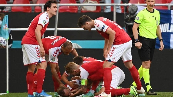বলের কাছে পৌঁছানোর জোর প্রচেষ্টা চালান তিনি। সর্বশক্তি দিয়ে পা বাড়াতে চেষ্টা করেন। কিন্তু ব্যর্থ হন। মাঠে লুটিয়ে জ্ঞান হারিয়ে ফেলেন ডেনমার্কের এই তারকা ফুটবলার। দৌড়ে আসেন সতীর্থরা। উৎকণ্ঠায় যার যার আসন ছেড়ে দাঁড়িয়ে যান দর্শক-সমর্থকরাও।