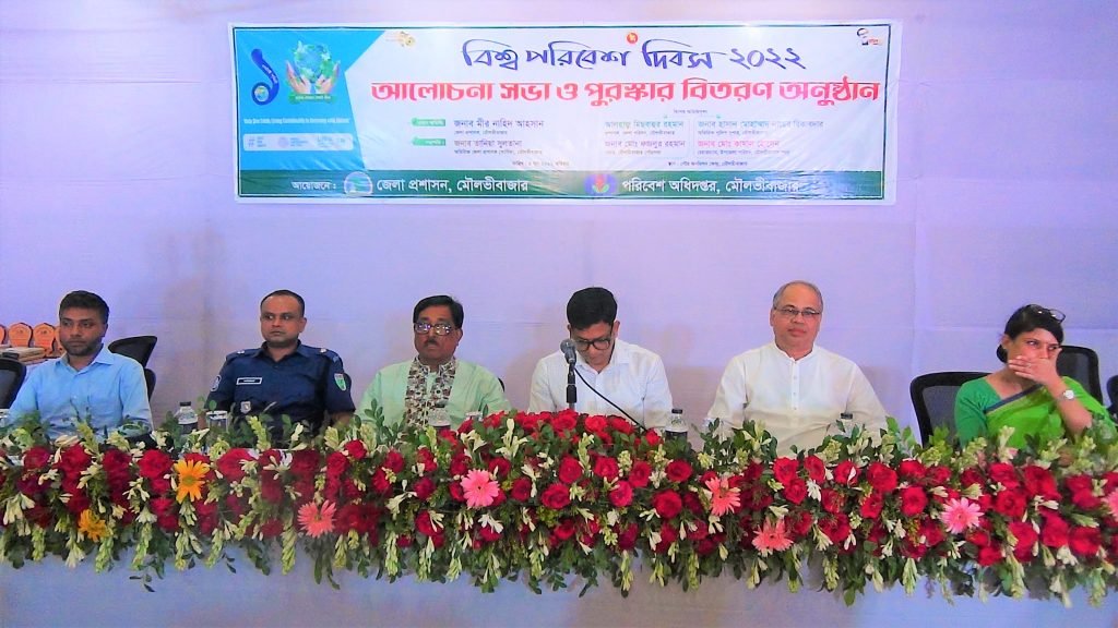 পরে   বিশ্ব পরিবেশ দিবস ২০২২ উপলক্ষে জেলা প্রশাসন মৌলভীবাজার ও পরিবেশ অধিদপ্তর মৌলভীবাজারের আয়োজনে পৌর জনমিলন কেন্দ্রে আলোচনা সভা, পুরষ্কার বিতরণী ও এক বর্ণাঢ্য র‌্যালীর আয়োজন করা হয়।