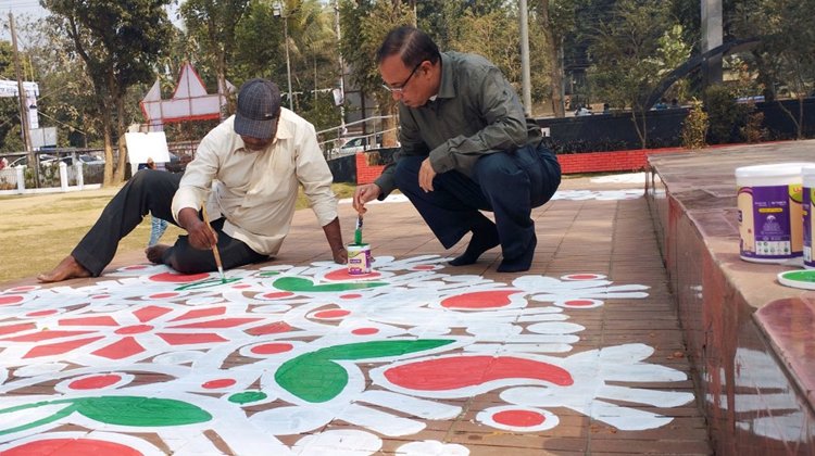 একুশ এলেই রঙতুলির আঁচড়ে মাতৃভাষার মর্ম ফুটিয়ে তোলা হয় মৌলভীবাজার কেন্দ্রীয় শহীদ মিনারে। বেদীজুড়ে আঁকা হয় আল্পনা। লাল-সবুজ-সাদা রঙে স্পষ্ট হয়ে উঠে চারুকর্ম।শহীদ বেদী প্রস্তুতির অংশ হিসেবে স্বেচ্ছাশ্রমে আল্পনা আঁকেন গণমাধ্যমকর্মী সালেহ এলাহী কুটি। শনিবার (১৮ ফেব্রুয়ারি) দুপুরে সরেজমিনে মৌলভীবাজার কেন্দ্রীয় শহীদ মিনার প্রাঙ্গণে গিয়ে দেখা যায় আল্পনা আঁকছেন তিনি।