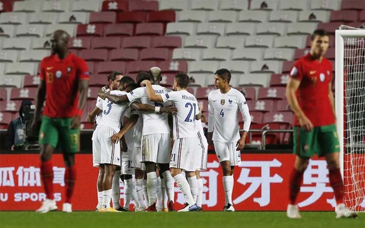 ডায়ালসিলেট ডেস্ক:: আগের ম্যাচে ফিফা ফ্রেন্ডলিতে তুলনামূলক কম শক্তির ফিনল্যান্ডের কাছে হারে ফ্রান্স। তবে আসল মঞ্চে ঠিকই নিজেদের শক্তি দেখাল বিশ্বচ্যাম্পিয়নরা। ডিফেন্ডিং চ্যাম্পিয়ন পর্তুগালকে ১-০ গোলে হারিয়েছে দিদিয়ের দেশমের দল। এই হারে উয়েফা নেশন্স লীগ থেকে ছিটকে গেল ক্রিস্টিয়ানো রোনালদোর পর্তুগাল। লিসবনে ফ্রান্সের জয়সূচক গোলটি করেন এনগোলো কঁতে।