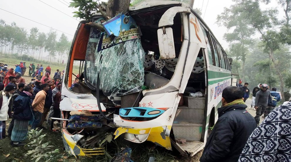 স্থানীয়রা জানান, হবিগঞ্জ থেকে ছেড়ে যাওয়া সিলেটগামী বিরতিহীন এক্সপ্রেস বাসটি সুদিয়াখলা এলাকায় পৌছলে একটি অটোরিক্সাকে ওভারটেক করার সময় বাসটি নিয়ন্ত্রন হারিয়ে গাছের সাথে ধাক্কা লাগে। এসময় বাসটির সামনের অংশ দুমড়ে মুছড়ে যায়। তাৎক্ষণিক স্থানীয়রা আহতদের উদ্ধার করে হাসপাতালে পাঠায়।