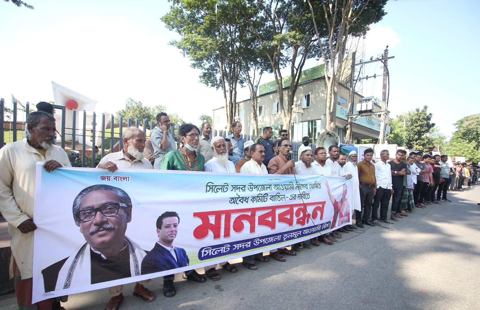 শনিবার ৫ নভেম্বর সিলেট কেন্দ্রীয় শহীদ মিনারের সামনে এ মানববন্ধন অনুষ্ঠিত হয়। সদর উপজেলা আওয়ামী লীগ কার্যকরী কমিটির সদস্য মো. শাহাবুদ্দিন এর সভাপতিত্বে ও সদর উপজেলা আওয়ামী লীগ নেতা আব্দুস সালাম এর পরিচালনায় প্রধান অতিথির বক্তব্য প্রদান করেন, সাবেক জেলা পরিষদ সদস্য ও সদর উপজেলা আওয়ামী লীগ নেতা মোহাম্মদ শাহানুর।
