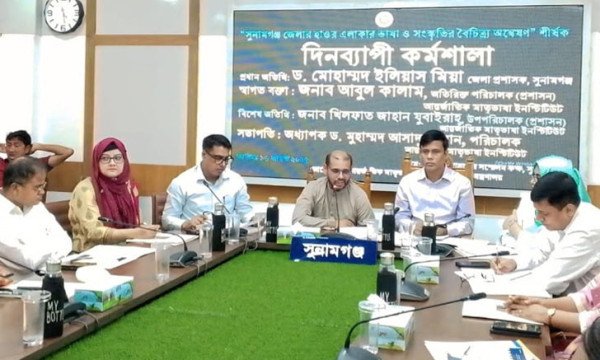 সুনামগঞ্জে হাওর এলাকার ভাষা ও সংস্কৃতির বৈচিত্র্য অন্বেষণ শীর্ষক কর্মশালা অনুষ্ঠিত হয়।আন্তর্জাতিক মাতৃভাষা ইনস্টিটিউটের উদ্যোগে শনিবার (১৬ আগস্ট) সকাল ১১টায় জেলা প্রশাসকের সম্মেলন কক্ষে এই কর্মশালা অনুষ্ঠিত হয়।