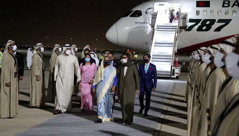 প্রধানমন্ত্রীর প্রেস সচিব ইহসানুল করিম বাসসকে বলেন, প্রধানমন্ত্রী ও তাঁর সফরসঙ্গীদের বহনকারী বিমান বাংলাদেশ এয়ারলাইন্সের (বিজি-১৩০১) একটি ভিভিআইপি ফ্লাইট সোমবার সন্ধ্যা ৭টা ২৫ মিনিটে (স্থানীয় সময়) আবুধাবি আন্তর্জাতিক বিমানবন্দরে অবতরণ করে।