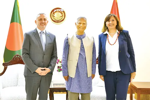 ডায়ালসিলেট ডেস্ক :ভাইস প্রেসিডেন্ট বাংলাদেশের সঙ্গে আরও ব্যবসার সুযোগ খুঁজতে জানুয়ারিতে বাংলাদেশ সফরের পরিকল্পনা করছেন। প্রধান উপদেষ্টা ইউরোপীয় ইউনিয়নের কর্মকর্তাদের শ্রম অধিকার সংস্কারে বাংলাদেশের প্রতিশ্রুতি সম্পর্কে আশ্বস্ত করেন, যা আরও বিনিয়োগ আনার পথ প্রশস্ত করবে। বলেন, আমরা নিশ্চিত করতে চাই যে, আমরা আন্তর্জাতিক মান বজায় রাখি… কোনো লুকোচুরি থাকবে না। আমরা এই গেমটি আর খেলতে চাই না। ইইউ কর্মকর্তারা বিভিন্ন খাতে সংস্কারের জন্য প্রফেসর ড. ইউনূসের রাজনৈতিক প্রতিশ্রুতির প্রশংসা করেন। পাম্পালোনি বলেন, এই প্রথমবারের মতো আমরা এমন কিছু রাজনৈতিক প্রতিশ্রুতি দেখেছি যা আমরা সমর্থন করি। তাই, আমরা আপনার ওপর নির্ভর করছি। প্রধান উপদেষ্টা আঞ্চলিক বিদ্যুৎ সংযোগ বাড়াতে নেপাল ও ভারতের সঙ্গে কাজ করার জন্য ইউরোপীয় ইউনিয়নকে অনুরোধ করেন। তিনি জানান, নেপালের ব্যাপক জলবিদ্যুৎ রয়েছে, যা নষ্ট হচ্ছে। ইউরোপীয় ইউনিয়নের সহায়তায় নেপাল, বাংলাদেশ এবং ভারতসহ অন্যরাও এর থেকে উপকৃত হতে পারে। প্রধান উপদেষ্টা ইউরোপীয় ইউনিয়নকে বাংলাদেশের তরুণদের দিকে মনোনিবেশ করার আহ্বান জানান এবং দক্ষিণ এশিয়ার ফুটবল দলে বাংলাদেশের নারী ফুটবলারদের সামপ্রতিক অর্জন তুলে ধরেন। তিনি বলেন, তারা এসেছে এবং জয় করেছে, শুধু একবার নয়, দু’বার। এ সময় বাংলাদেশ নারী ফুটবল দলকে অনুপ্রাণিত করতে ইউরোপীয় ইউনিয়নকে একটি ইউরোপীয় ফুটবল দল পাঠানোর অনুরোধও করেন তিনি।