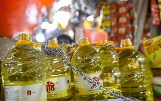 এদিকে, ভোজ্য এ তেলটির দাম বেড়ে যাওয়ায় হরহামেশা হচ্ছে চুরিও। রাতে দোকানের তালা ভেঙে হচ্ছে চুরি, দিনের বেলাও দলেবেঁধে ক্রেতা সেজে তেল চুরি করছে একটি চক্র। এ কারণে সিলেট নগরীর কালিঘাটে বিভিন্ন দোকানে সয়াবিন তেলের বোতল বেঁধে রাখা হয়েছে লোহার শেকল দিয়ে।