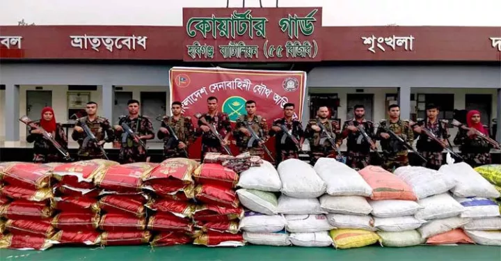 হবিগঞ্জে গত ২৪ ঘণ্টায় বিপুল পরিমাণ ভারতীয় গাঁজা, জিরা, ফুচকা, শাড়ী, চকলেট, ট্রাক, মাইক্রোবাস এবং বাইসাইকেল জব্দ করেছে বিজিবি। চোরাই পথে আনা  এসবের কিছু পণ্য ট্রাকের পাথরের নিচ থেকে জব্দ করা হয়। জব্দ করা চোরাচালানির মূল্য প্রায় ৪ কোটি ৬৯ লাখ ৫৪ হাজার ৫০০ টাকা।